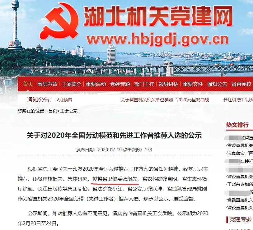 最近,湖北機關黨建網發布了《關于對2020年全國勞動模范和優質工作者推薦人選的公示》(以下簡稱公示),之前引發關注的”疫情上報第一人”張繼先,作為省直機關2020年全國勞模(優質工作者)推薦人選出現在公示欄中。螺桿泵