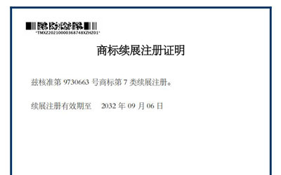 中成泵業cnsp商標續展注冊證明
