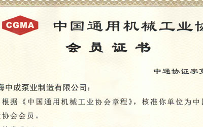 中國通用機械工業協會會員證書