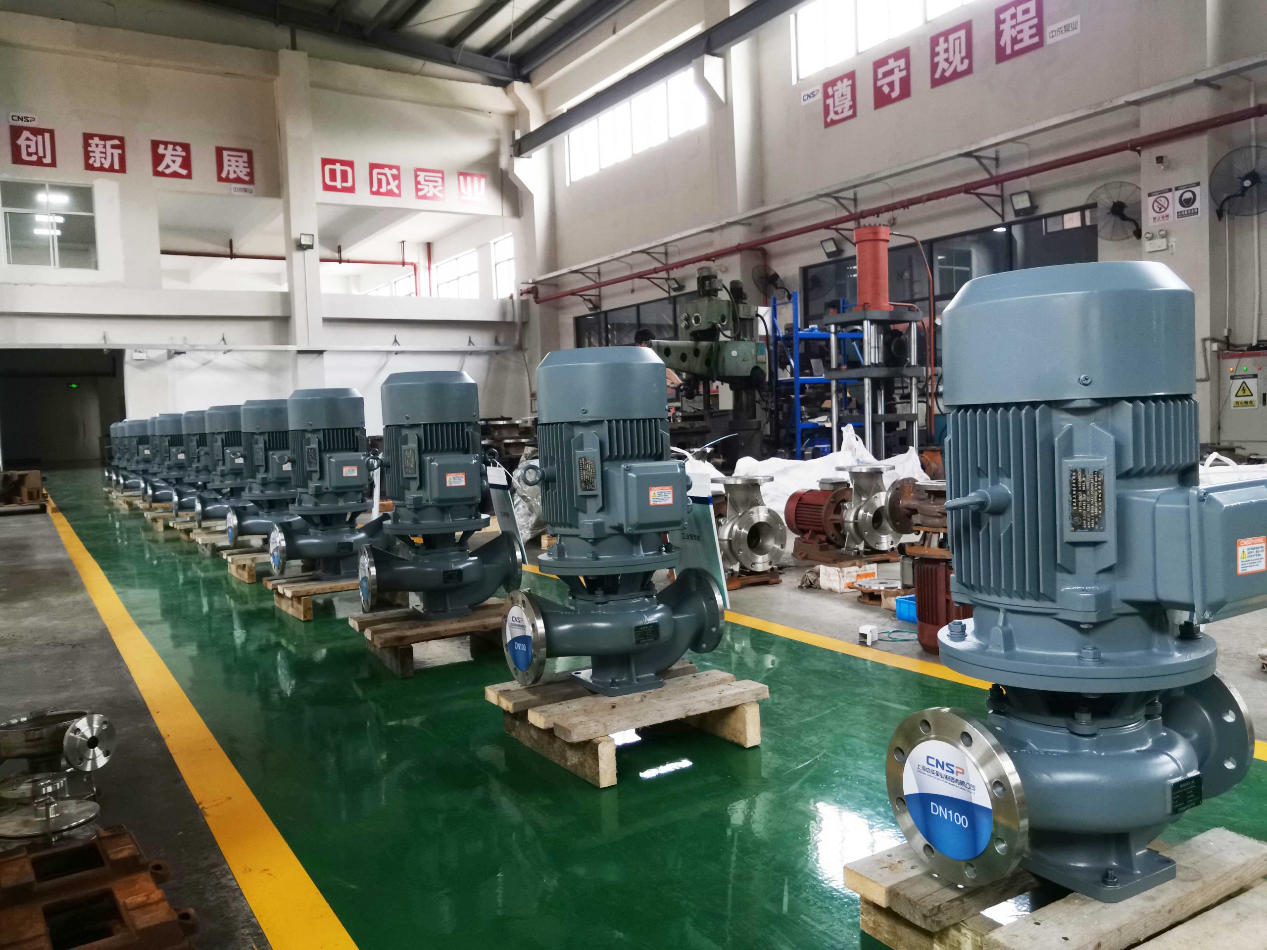 河北某環保設備有限公司主營工業廢氣處理設備、粉塵收集處理、污水處理設備多年,因擴大生產線在我廠訂購一批管道離心泵,型號為IHG100-125(I),材質為304不銹鋼,配普通電機(380V/50Hz)用于輸送污水。部分參數供選型參考:流量160m3/h?壓力20m ?功率15kW2 ?進口100mm ?出口100mm,生產檢驗完工已交付客戶使用。